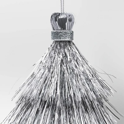 Add festive shimmer to your tree with this 5-Inch Mini Tassel Ornament Set from Wondershop™. Made from polyester and plastic, this set includes three mini tassels in silver tinsel to add a burst of festive shine to your decor. Designed with built-in loops, you can easily hang them on your Christmas tree — hang them from the outer branches to reflect light or cluster them around any figurine ornament for added sparkle.