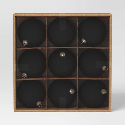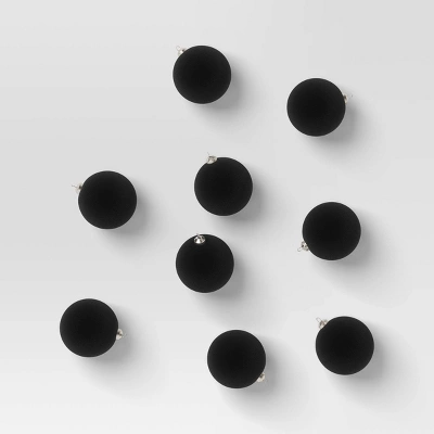 Bring elegant style to your tree with this 9-Count 80mm Christmas Flocking Ball Set from Wondershop™. This plastic ornament set features a nine ball ornaments in a flocked black finish for a unique look. Intended for indoor decorative use and made of plastic, each ornament includes a silver-tone cap with a coordinating top loop for easy hanging from the branches of your tree.