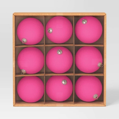 Add a pop of color to your festive decor with this 9-Count Christmas Flocking Ball Set from Wondershop™. This set includes nine Christmas ball ornaments designed in a hot pink hue that adds a vibrant touch to your seasonal decor. Additionally, these ball ornaments feature an attached silver-tone loop, making them easy to hang from the Christmas tree and coordinate with various holiday tree ornaments.