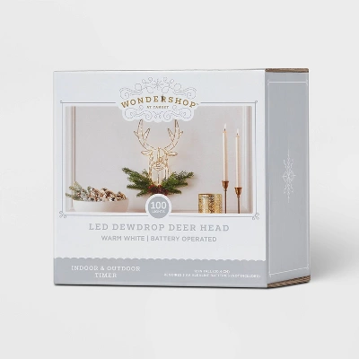 Brighten up your holiday decor with this LED Reindeer Head with Faux Greenery Christmas Novelty Silhouette Light from Wondershop™. This Christmas novelty light features a silhouette-style deer head set above a decorative arrangement of faux greenery, complete with a pinecone and red berries. Adorned with 100 LED warm white bulbs, it casts a charming glow and is suitable for both indoor and outdoor use. Plus, it comes with a hanging ring for simple and versatile display.